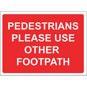 Guide foot traffic safely around construction or roadwork zones with this Zintec Rectangular "Pedestrians Please Use Other Footpath" Sign, measuring 600mm x 450mm. Made from durable Zintec steel, it is designed for temporary use in public areas where pedestrian routes are blocked or under maintenance.