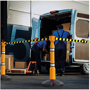 Featuring bright yellow posts and Skipper units, the system offers strong visual impact for hazard awareness and crowd control. The retractable belts integrate seamlessly with the posts, while additional accessories like signage holders can be added for tailored site communication.