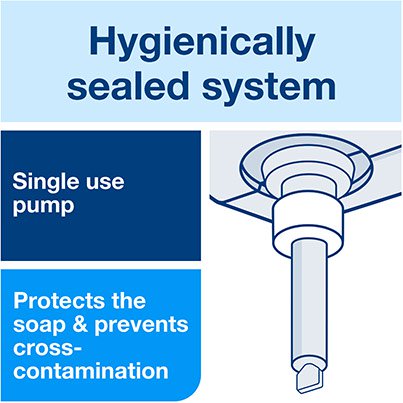 Hygienic Design: Sealed refill with a single-use pump reduces the risk of cross-contamination during refills.