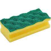 Combines an abrasive yellow scourer for removing tough dirt with a soft sponge for wiping and absorbing liquids.