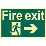 PVC Photoluminescent "Fire Exit" Right Man/Arrow Sign 300mm x 200mm: Glow-in-the-Dark Emergency Exit Sign
