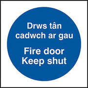PVC Welsh/English "Fire Door Keep Shut" Sign 100mm x 100mm