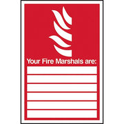 PVC "Your Fire Marshals are:…" Sign 200mm x 300mm - Clear Identification for Safety