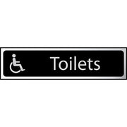 Self-Adhesive Black/Chrome Disabled "Toilets" Sign 200mm x 50mm