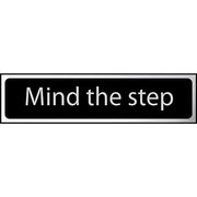 Self-Adhesive Black/Chrome "Mind The Step" Sign – 200mm x 50mm