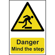 Self-Adhesive PVC "Danger Mind The Step" Sign 200mm x 300mm