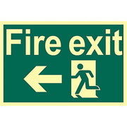 Self-Adhesive PVC Photoluminescent "Fire Exit" Left Sign 300mm x 200mm: Glow-in-the-Dark Emergency Exit Sign