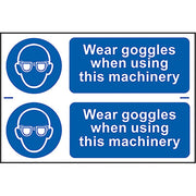Self-Adhesive PVC "Wear Goggles...Machinery" Sign 300mm x 100mm (Pack of 2)