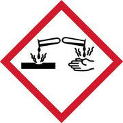 Design: GHS-compliant Corrosive pictogram (test tube with corrosion on hand and surface)