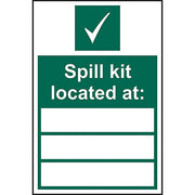 Clear Messaging: Bold "Spill Kit Located at" text with space for location labeling, ensuring fast access during emergencies.