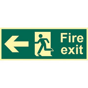 Vinyl Photoluminescent "Fire Exit" Left Arrow/Man Sign (400mm x 150mm)