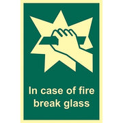 Vinyl Photoluminescent "In Case Of Fire Break Glass" Sign (100mm x 150mm)
